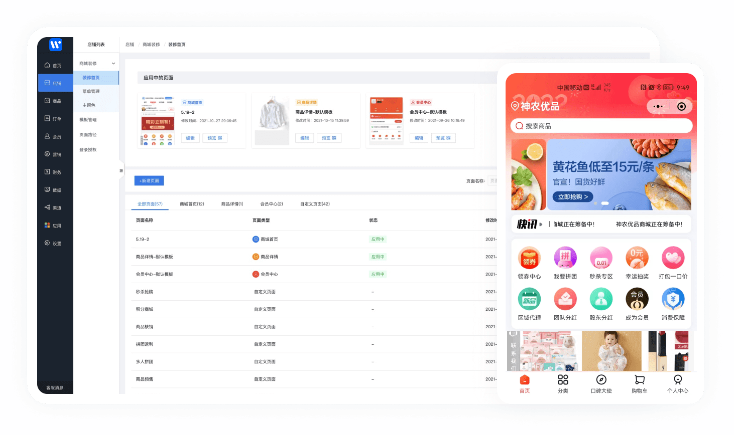 全渠道多终端覆盖,丰富营销功能、多元盈利模式、智能数据分析,助力企业打造智慧电商生态系统